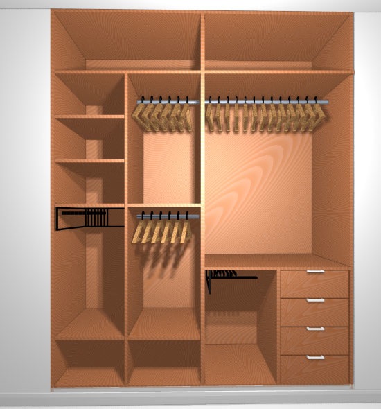 En estos casos, los carpinteros solo deben realizar los trabajos para la disposición interior de los elementos de madera (natural o chapada). Consulte con personal especializado que le proporcionará toda la información que le sea necesaria sobre las diferentes disposiciones de los vestidores.